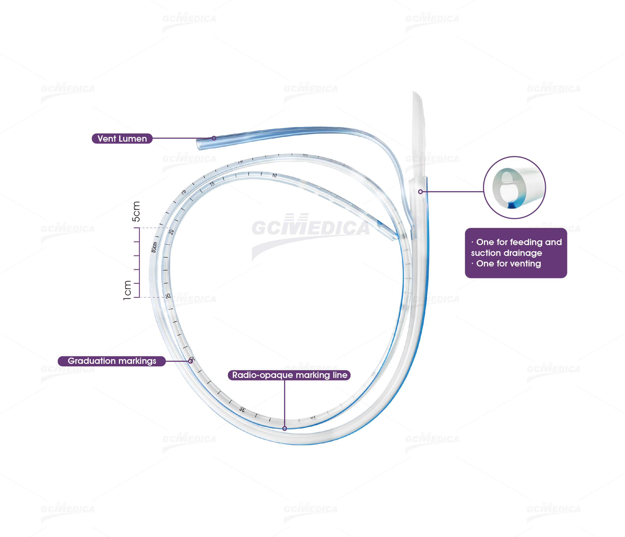 · Equipped with graduation markings assisting the clinician with tube placement by providing