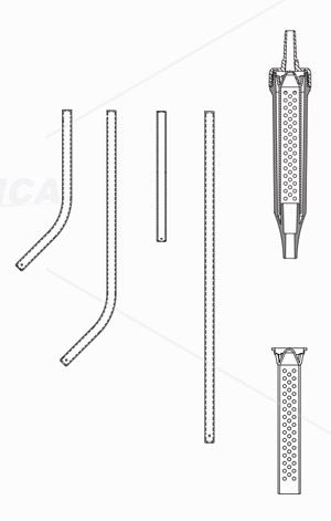 · Reversible suction tip available with straight or curved tip with length 11cm, 15cm, 23cm and 28cm